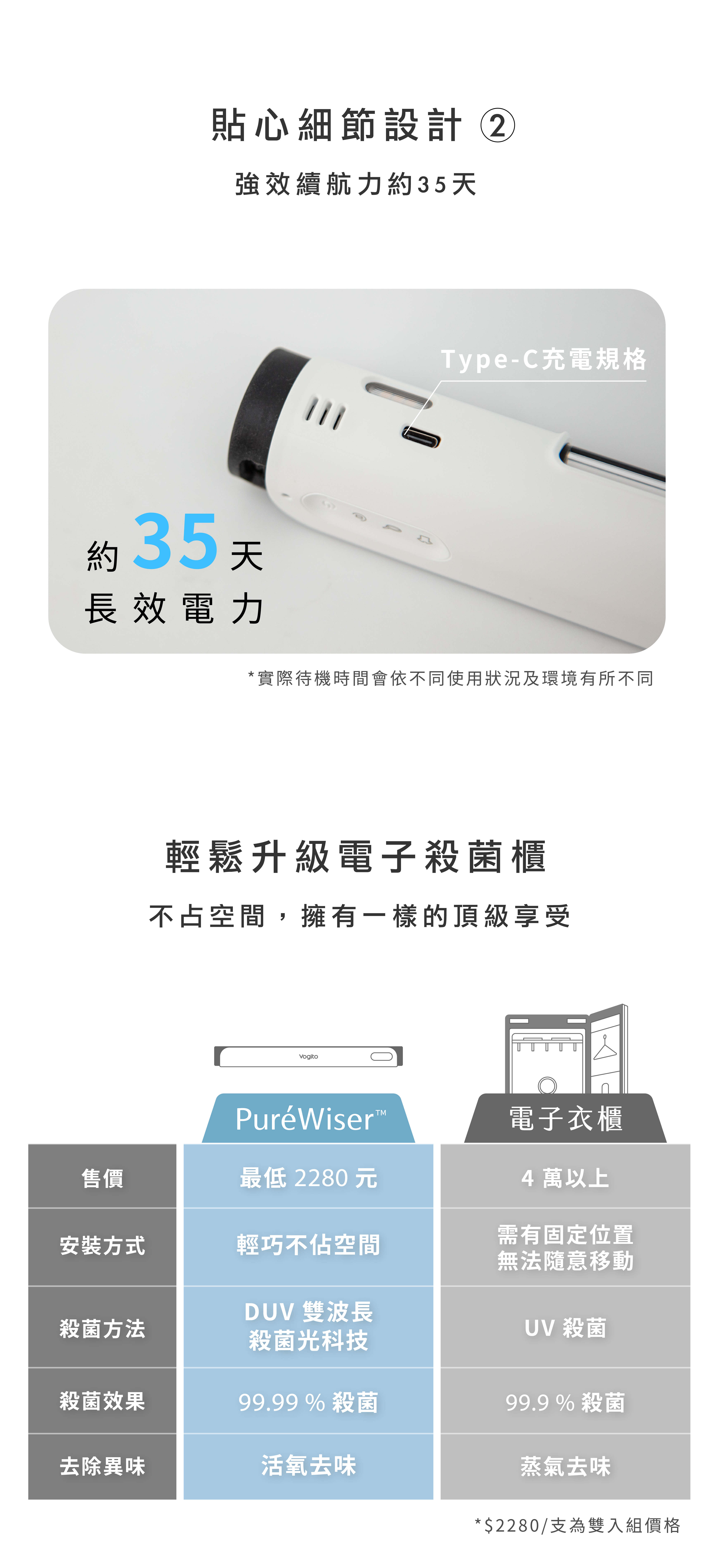 內容物 : PuréWiser⁺™智能櫥櫃殺菌燈(一入)、Type-C充電線(一條)、魔術撐桿(一入)、磁吸貼片(一入)